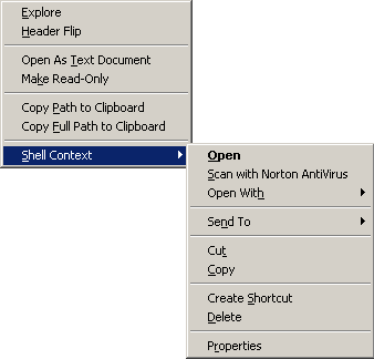 a file, a context menu is available. The context menu also